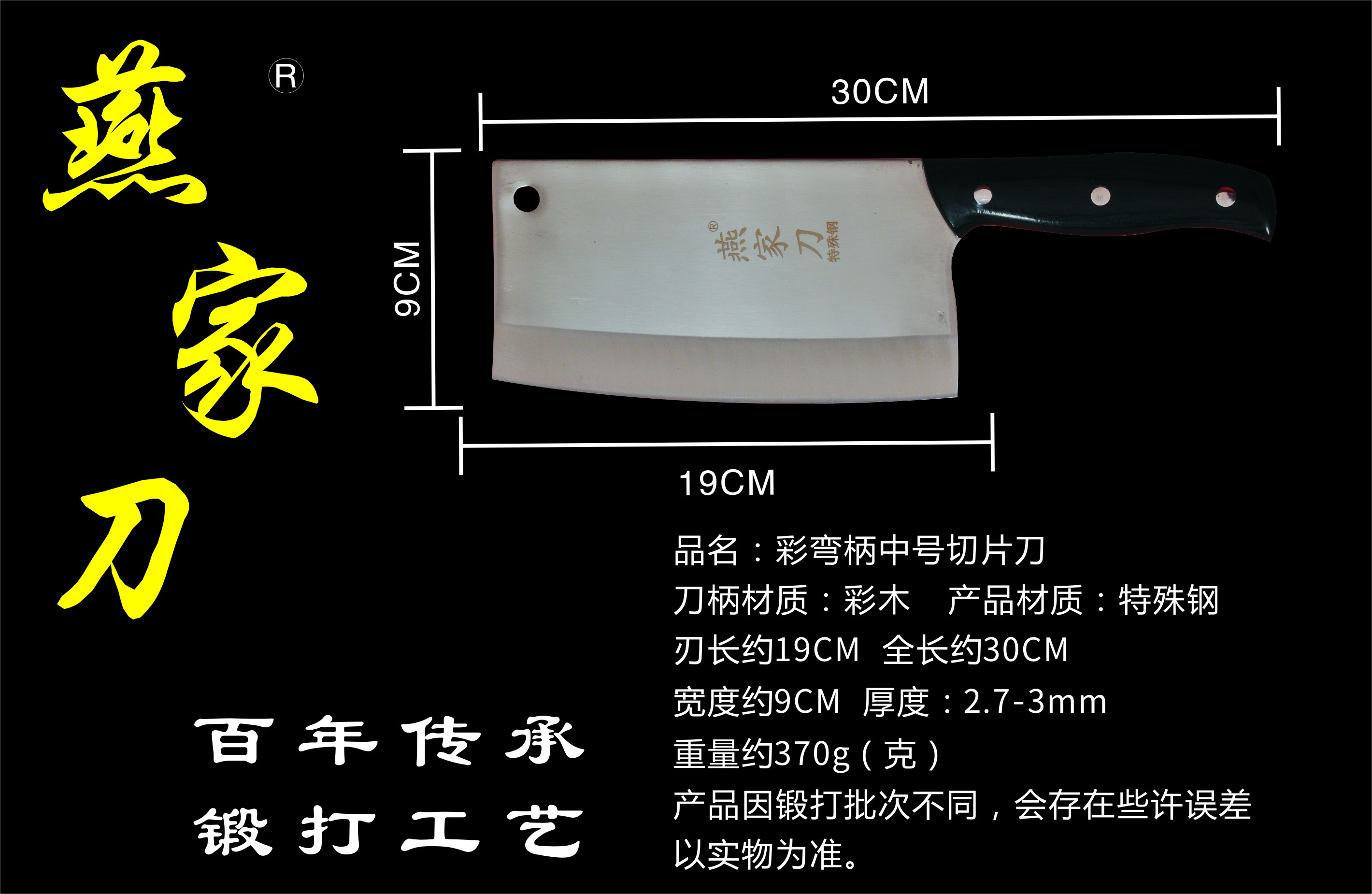 樂(lè)山燕家刀具有限公司(公司前身為燕佳鐵匠鋪),公司坐落于美麗的佛都之鄉(xiāng)樂(lè)山嘉州,在全國(guó)各地有上千家代理經(jīng)銷點(diǎn),公司專業(yè)銷售、設(shè)計(jì)、制作各類刀具。秉承一貫鍛造三精要求,即選料精、用料精、工藝精。所選材料全部產(chǎn)自滇東鐵礦優(yōu)產(chǎn)區(qū)。本品牌刀具堅(jiān)持千挑萬(wàn)選為材,千錘百煉為刀的手工鍛造工藝宗旨。具有鋒利耐磨、持久耐用,用料上乘,硬度高、韌度強(qiáng)的特點(diǎn)!